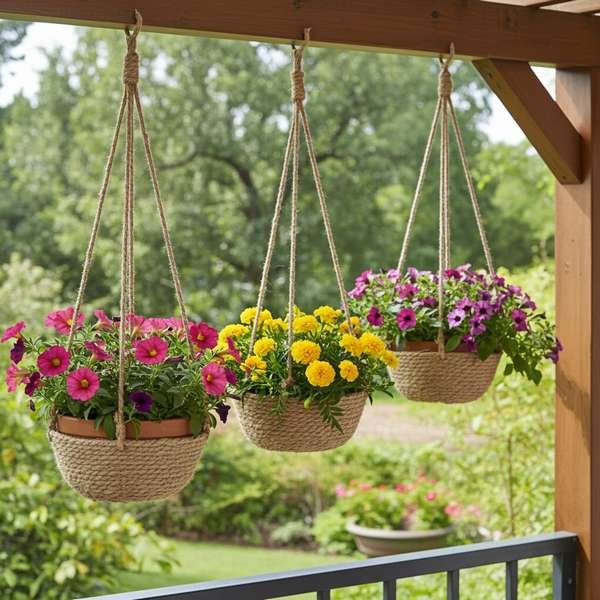 A kaspó juta kötél akasztóval van ellátva, így könnyedén felhelyezhető fák vagy kerítések közelébe. A natúr szín és a természetes anyagból készült kaspó tökéletesen illeszkedik a kert összképébe.