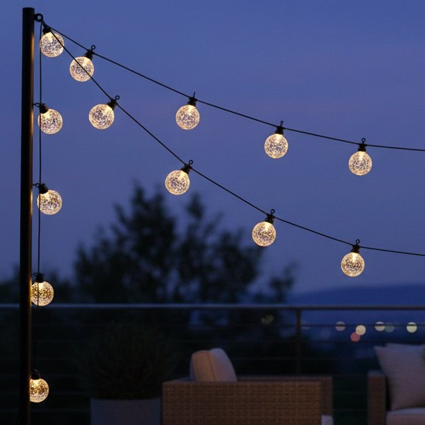 kerti dekorációhoz vagy erkélyvilágításhoz.